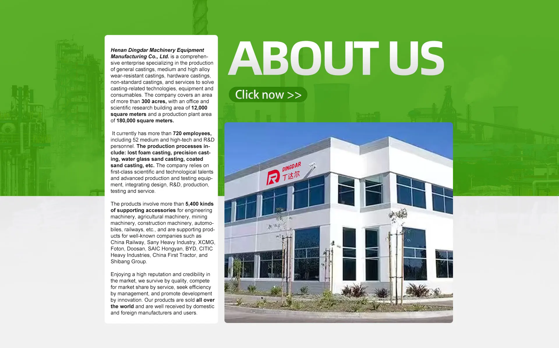 Henan Dingdar Machinery Equipment Manufacturing Co., Ltd. Productos principales:Fundición de espuma perdida, equipo de fundición de arena, sistema de fundición de arena recubierto de resina, fundición de inversión/fundición de precisión, equipo de vertido